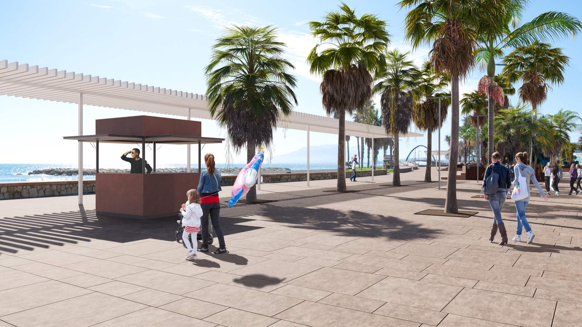 Así, siguiendo el proyecto que ahora pretenden repensar, al menos en parte, para dar sensación de amplitud a la zona se prevé la instalación de losas de hormigón de gran formato y anchos variables entre 40 y 100 centímetros y piezas de piedra natural en los espacios de acceso a la playa. Asimismo, se contempla la instalación de una serie de pérgolas sencillas para que proporcione sombra adecuadamente en sustitución de las existentes de hormigón, muy pesadas y deterioradas.
